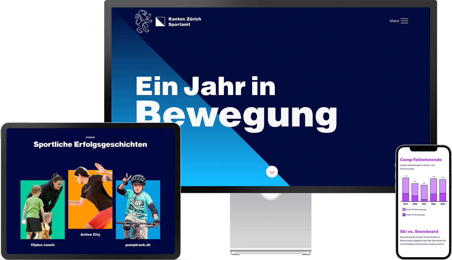 Konzeption und Umsetzung des ersten digitalen Jahresberichts für das Sportamt des Kantons Zürich. Ein Meilenstein für moderne, digitale Kommunikation.