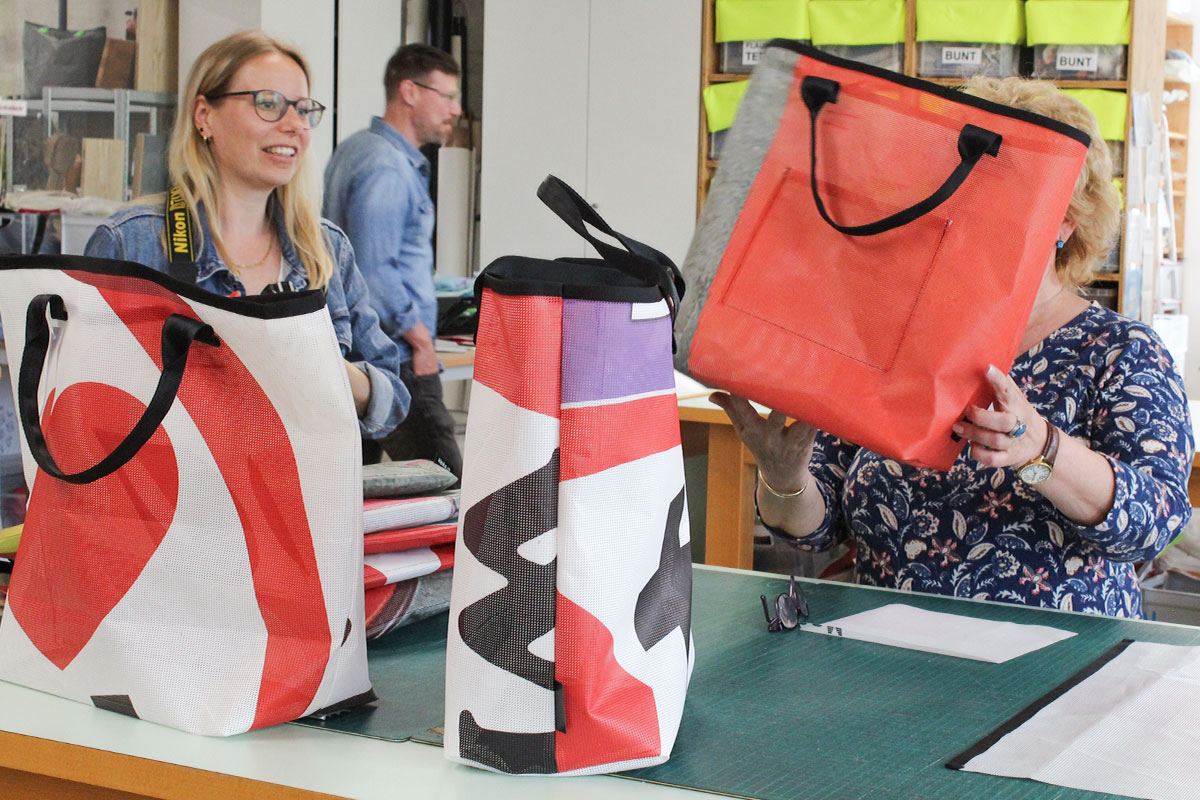 Die Weiterverarbeitung des Blachen-Materials zu Taschen, Rucksäcken, Portemonnaies, usw., fördert ein nachhaltiges Recycling der Werbeblachen und kann dadurch den Kreislauf schliessen.