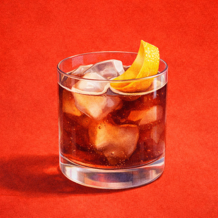 Campari und Wermut auf Eis, mit Prosecco auffüllen. Mit Orangenzeste garnieren.