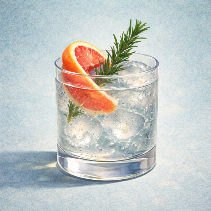Glas mit Eis füllen, Tonic einfüllen. Grapefruitzeste ausdrücken, Rosmarin kurz andrücken und ins Glas geben.