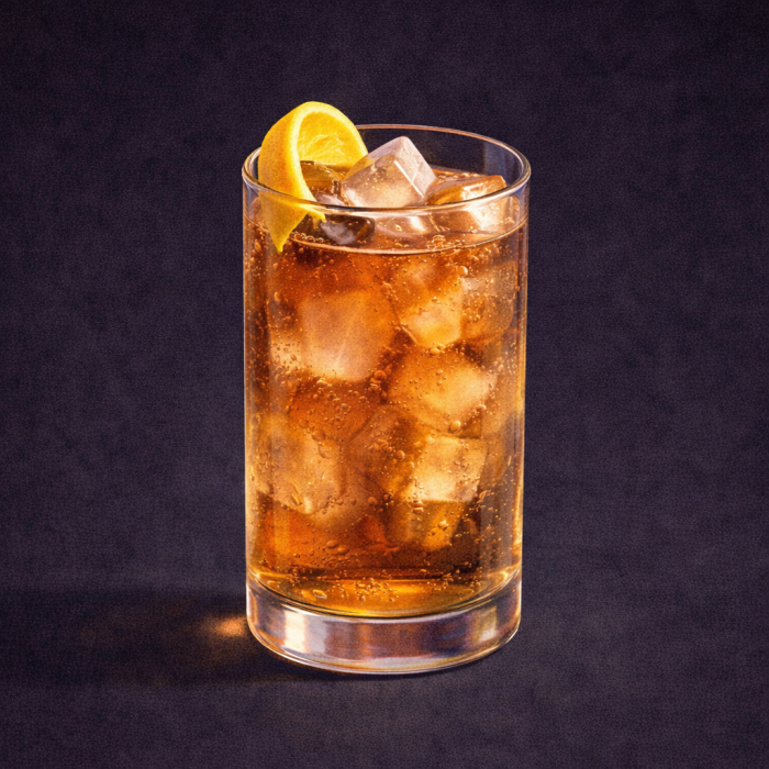 Whiskey auf Eis giessen, mit Soda auffüllen. Mit Zitronenzeste aromatisieren, nicht umrühren.